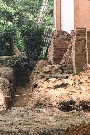 The other day, I sat at my desk near the front of the house and realized something was different. It took me a moment to know what it was–it was quiet. It was glorious peace after days of listening to a jack hammer drilling into concrete and a back hoe digging a trench.