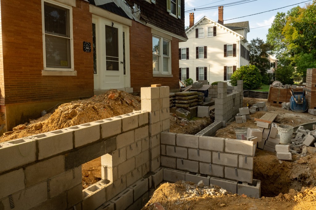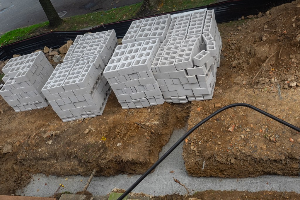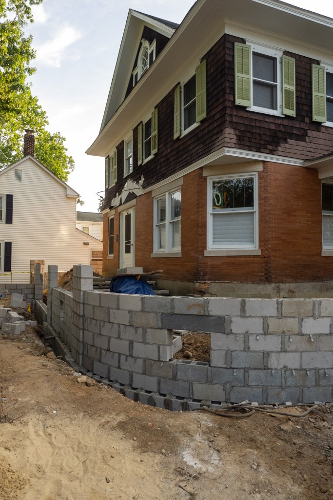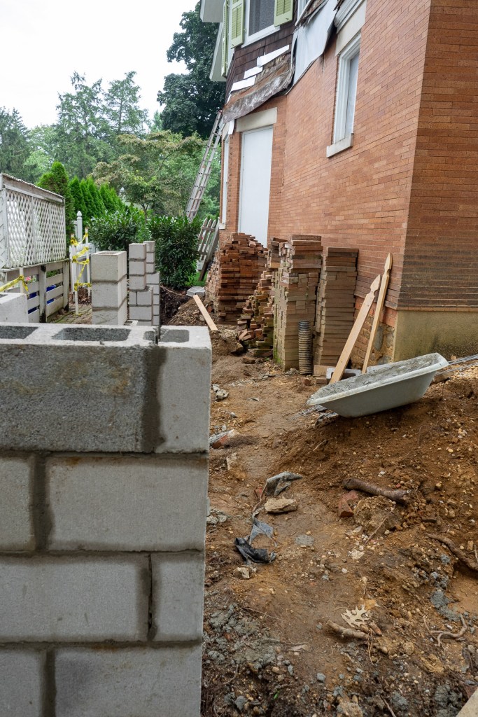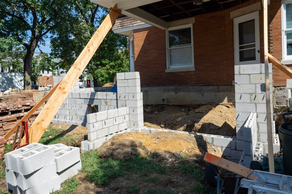Once the cement dried, they began to lay the new block foundation. Now, you can begin to see the future structure of the porch.