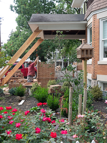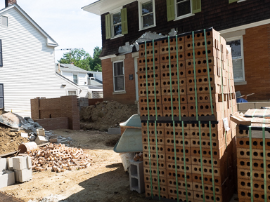 Everyone has been wondering if the porch will be done before the Historical Cranbury House Tour on Saturday. Obviously not! But those of you who come on the tour will get a close-up view of the porch construction. You’ll also see our fully-finished interior. And contrary to rumors, you will not have to scale a ladder to get into our house. You can buy them the day of the tour at the Elizabeth M. Wagner History Center or the Cranbury Museum.