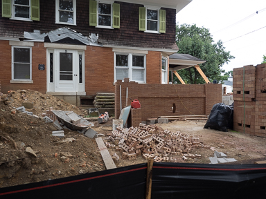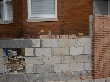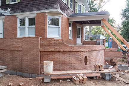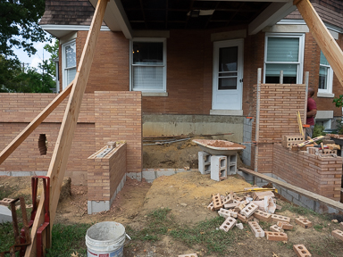 We’ve been watching as our porch wall grew, brick by brick, for the past five weeks. It’s a masterpiece. We never really understood the amount of detailed craftsmanship required. We have also been amazed as we see the plan come to life.