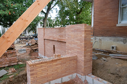Telling you about the process is definitely more boring that just showing you, so here are a bunch of photos of the process. They started with the north porch wall. This is the wall that had been standing, but we couldn’t repair. This new wall exactly replicates the details of the old wall.
