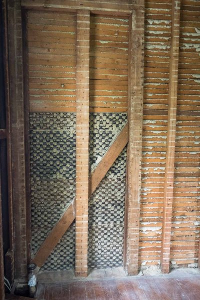 The metal lathe is what is behind the adjacent bathroom’s tile.