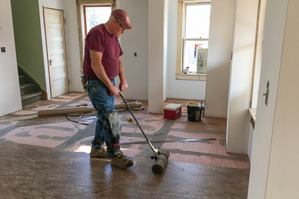 Then the linoleum is cut, rolled out and flattened.