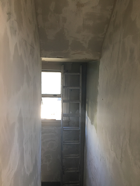 The many cracks are being repaired with a new layer of plaster.